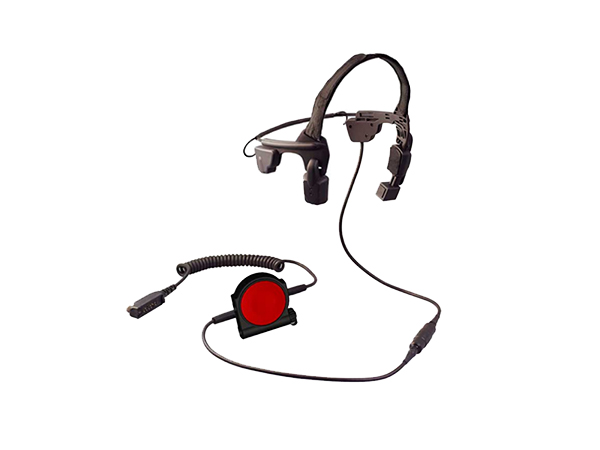 整体产品由头戴式耳机和大按键控制盒两个部分组成。耳机部分采用基于面骨振动传音的骨传导技术,包括骨传导喇叭和骨传导麦克风。使用时,喇叭及麦克风紧贴脸颊。整体设计坚固耐用。
